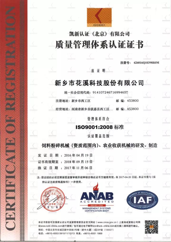 開展體系認證工作對于提高公司產(chǎn)品質(zhì)量,增強企業(yè)綜合競爭能力,具有重要的現(xiàn)實意義和積極的促進作用。公司早在2009年便已通過了質(zhì)量管理體系(ISO9000)的審核,獲取了證書。
